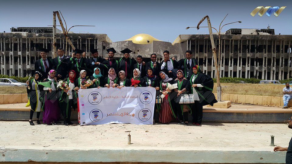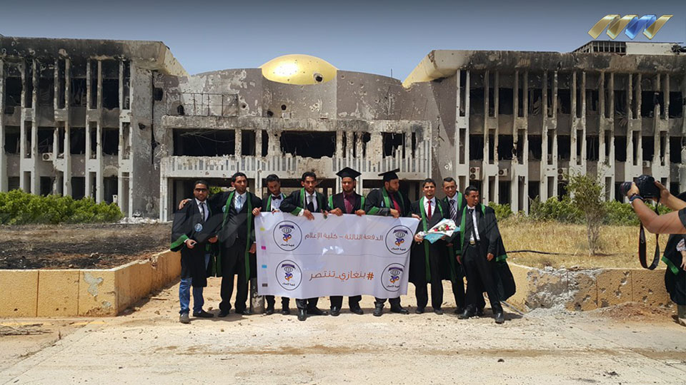 شهدت جامعة بنغازي أمس الخميس، تخريج الدفعة الثالثة من طلبة كلية الإعلام، وعبر الطلبة عن فرحتهم وسعادتهم بتحرير جامعتهم من الإرهاب الذي منعهم من مواصلة دراستهم من داخل الجامعة.