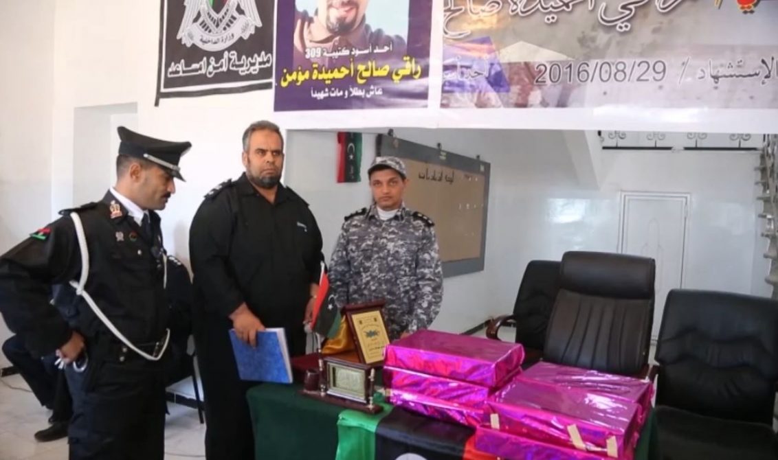 وقال المتحدث باسم المديرية الرائد أحمد الفرجاني في تصريح لـ “قناة ليبيا” إن تكريم الضباط جاء بالإضافة إلى تأبين الشهيد راقي صالح أحميده مومن أحد شهداء الكتيبة ثلاثمئة وتسعة الذي استشهد وهو يقدم واجب الذود عن أمن ليبيا ووحدتها، وقدمت المديرية لذويه ” درع الوطنية”.