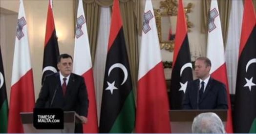عقد رئيس المجلس الرئاسي فايز السراج مع رئيس الوزراء المالطي جوزيف موسكات مؤتمرا صحفيا ، ناقشا فيه قضايا الهجرة والإرهاب.