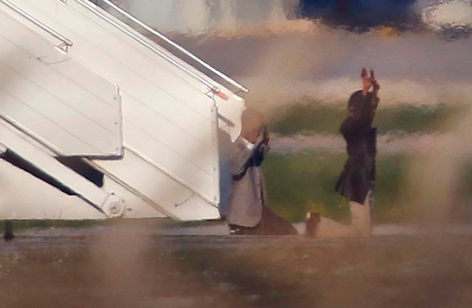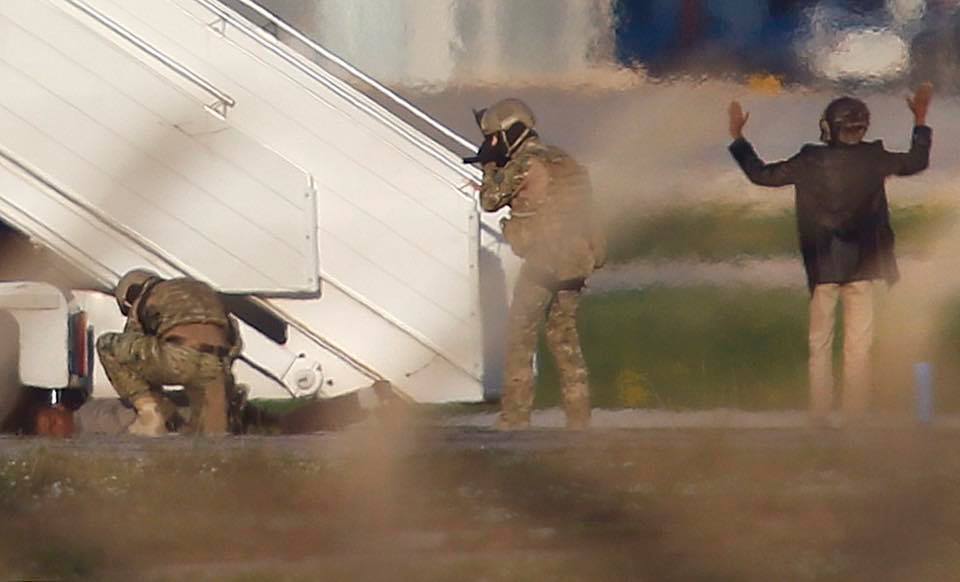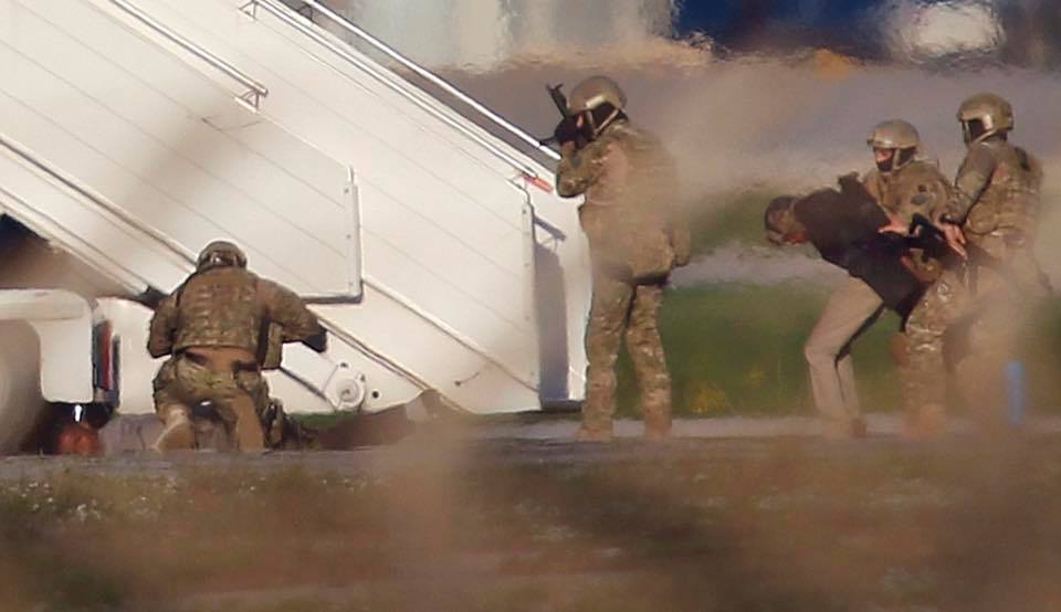 وأظهرت الصور الواردة من مطار مالطا خروج أحد الخاطفين ملوحا بعلم النظام السابق من أمام باب الطائرة.