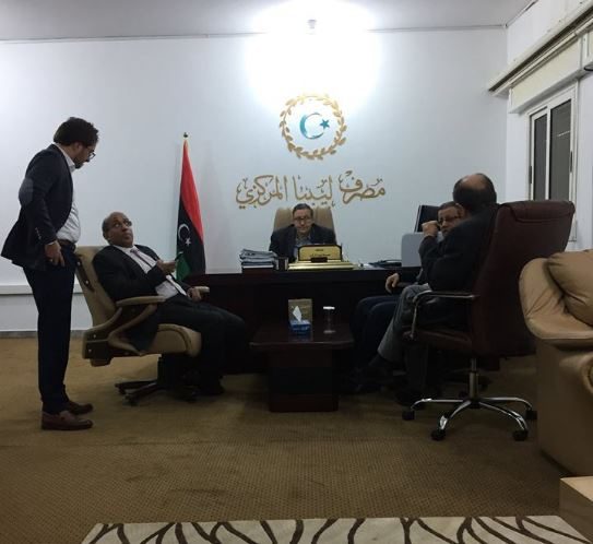 بحث محافظ مصرف ليبيا المركزي البيضاء علي الحبري مع رئيس لجنة إدارة شركة البريقة لتسويق النفط فرع طبرق بالوكالة، تعاقدات الشركة وحوالاتها النقدية.