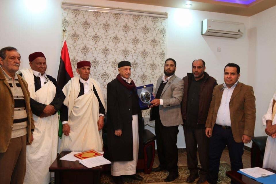 استقبل رئيس مجلس النواب المستشار عقيله صالح بمقر إقامته بمدينة القبة وفد ممثلي بلديات الجنوب ووفداً من مشايخ و أعيان وحكماء و شباب قبيلة الجوازي وعددا من مشايخ وأعيان وحكماء قبيلة العواقير، حيث أكد كل من الوفدين على شرعية مجلس النواب المنتخب، معلنين دعمهم ومساندتهم له و للقوات المسلحة الليبية بقيادة المشير خليفة حفتر، كما أوضحوا لفخامة الرئيس الخدمات المتاحة لسكان الجنوب في مجال الخدمات والاقتصاد والأمن من خلال الوزارات المختصة بالحكومة المؤقتة.