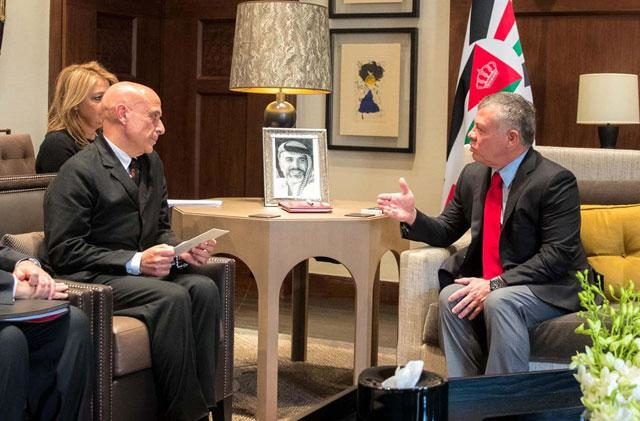 بحث العاهل الاردني الملك عبد الله الثاني أمس مع وزير الداخلية الايطالي ماركو منيتي مستجدات الملف الليبي و ديناميات تدفقات الهجرة.