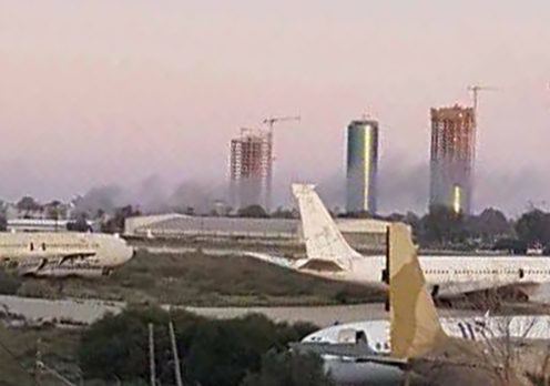 تعرض مطار معيتيقة الدولي صباح اليوم إلى هجوم عنيف بمختلف أنواع الأسلحة، ما أدى إلى توقف جميع الرحلات الجوية المحلية والدولية، وتحويلها إلى مطار مصراتة .