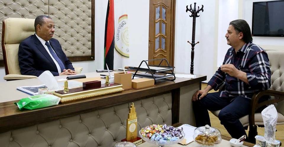 بحث رئيس مجلس وزراء الحكومة المؤقتة عبد الله الثني، مع رئيس الهيئة العامة للكهرباء والطاقات المتجددة فخري المسماري، سير العمل بالهيئة العامة للكهرباء والطاقات المتجددة والوضع العام للشبكة.