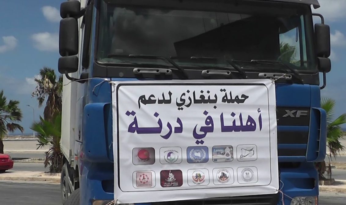 وصلت إلى مدينة درنة قافلة مساعدات وإغاثة من مدينة بنغازي دعما للأسر النازحة، تحت اسم: “حملة بنغازي لدعم أهلنا في درنة”.