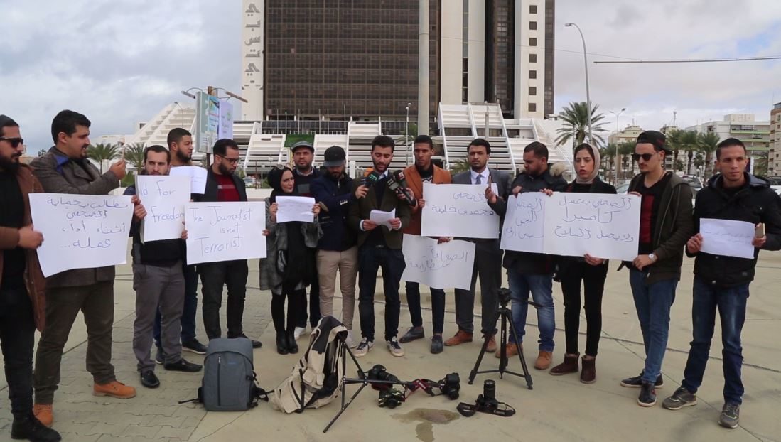ودعا الصحفيون وفقاً للبيان المصور الذي تابعته كاميرا قناة ليبيا، إلى حماية الصحفيين، وعدم المساس بهم، إلى جانب احترام عملهم وعدم إهانتهم، وعدم منعهم من القيام بأداء واجباتهم ضمن القانون، لافتين في هذا الصدد، إلى أحقية الدولة باتخاذ الاجراءات القانونية حيال من يشتبه بتعاونه ودعمه لأي جهة إرهابية ودولية.