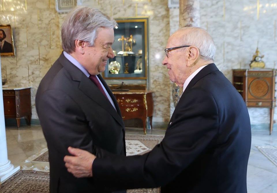 بحث الرئيس التونسي الباجي قايد السبسي أمس في قصر قرطاج مع الأمين العام للأمم المتحدة أنطونيو غوتريش القضايا ذات الاهتمام المشترك، وفي مقدمتها الملف الليبي .