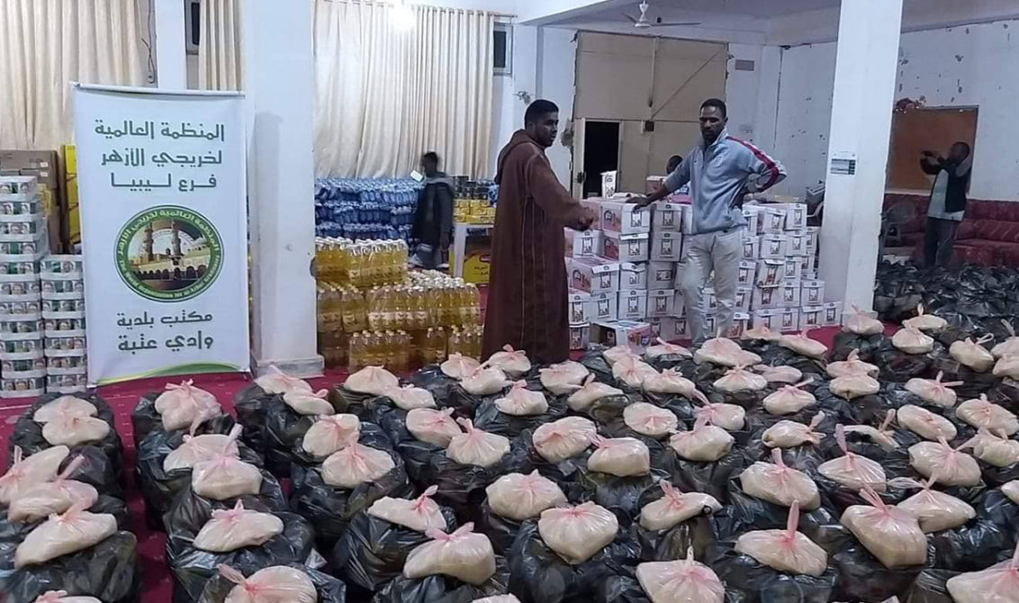 قام مكتب المنظمة العالمية لخريجي الأزهر فرع ليبيا بوادي عتبة بتوزيع إغاثة إنسانية على 300 عائلة نازحة من مدينة مرزق.