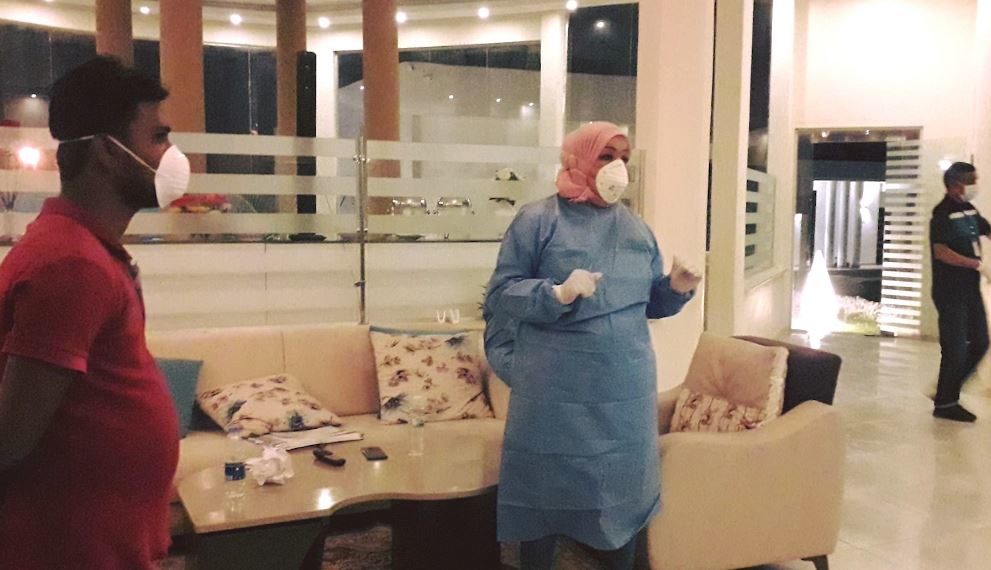قام فريق التوعية والتثقيف الصحي الفريق الطائر المكلف من الغرفة المركزية بالخدمات الصحية بنغازي بتنفيذ برنامج توعوي استهدف العاملين والمواطنين الخاضعين للحجر الصحي بمنتجع الواحة.