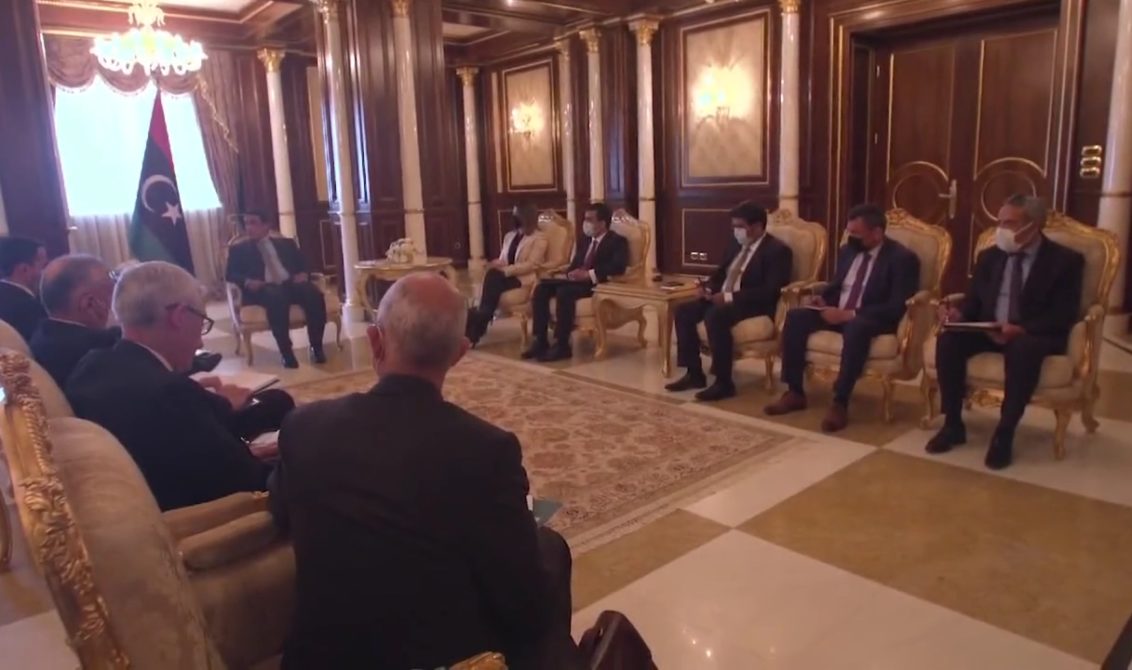 استقبل رئيس المجلس الرئاسي محمد المنفي رئيس الوزراء الإيطالي ماريو دراغي، اليوم في العاصمة طرابلس، بحضور وزيرة الخارجية والتعاون الدولي، نجلاء المنقوش.