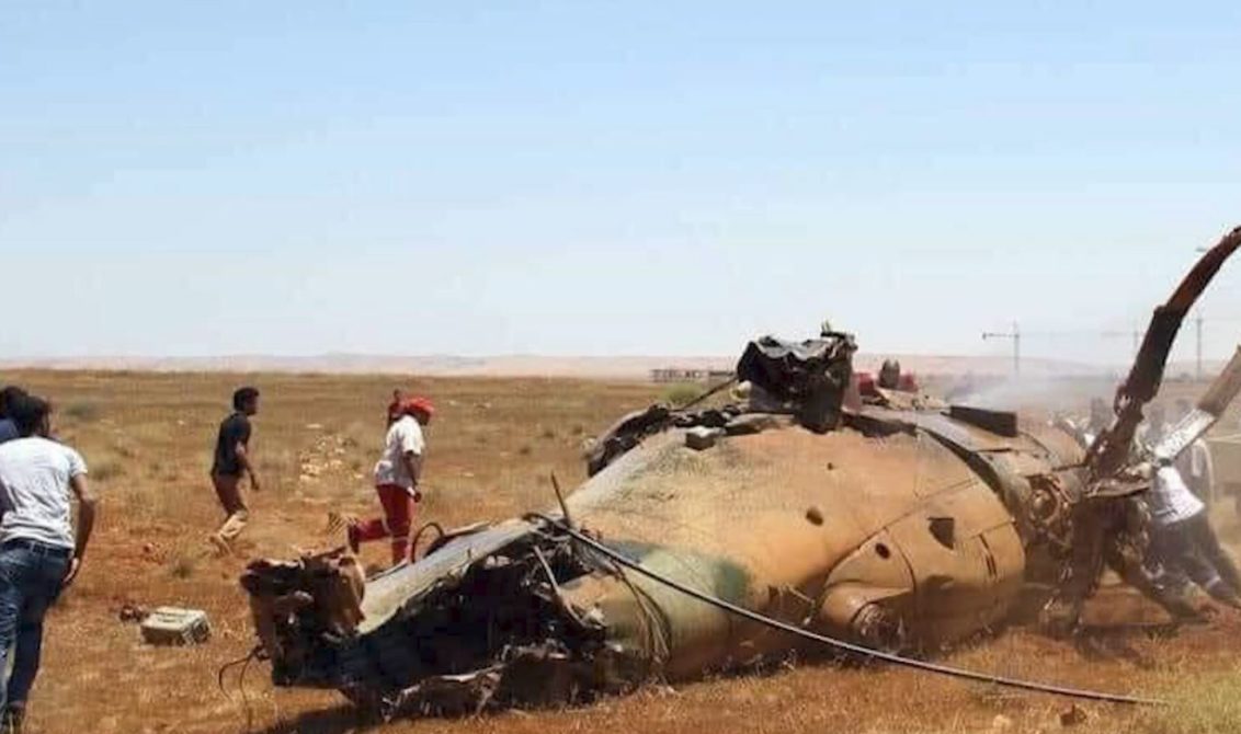 تحطمت طائرتان عموديتان تابعتان للسلاح الجوي الليبي جنوب بنغازي، بعد اصطدامهما ببعضهما أثناء تدريبات اليوم، ومقتل طاقم إحداهما.
