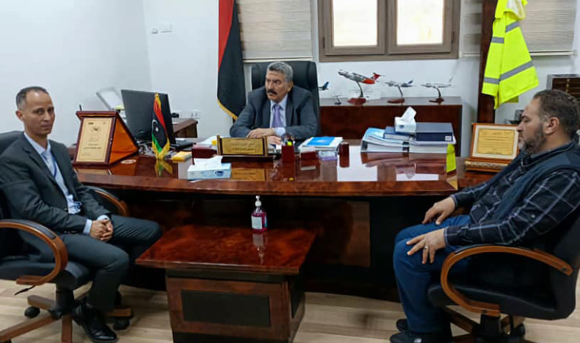 ناقش مدير مطار معيتيقة الدولي، لطفي الطبيب، مع مدير المحطة للشركة الليبية للخدمات الأرضية العملية التشغيلية والتنظيمية بالمطار من خلال تحسين خدمات المسافرين بمحطة الركاب.