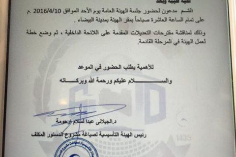 ارحومة يدعو كافة أعضاء هيئة الدستور لحضور جلسة الأحد المقبل في البيضاء