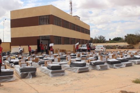 الهلال الأحمر يوزع 600 حصة غذائية على العائلات النازحة بمنطقة بنينا