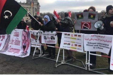 مظاهرات حاشدة مؤيدة للجيش ورافضة للتدخل التركي أمام مقر انعقاد برلين